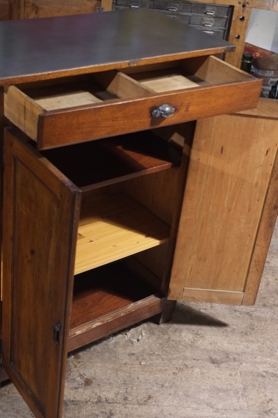 Meuble de metier ancien de dentiste epoque 1930 entierement décapé et polis et patiné dessus en marbre d'origine